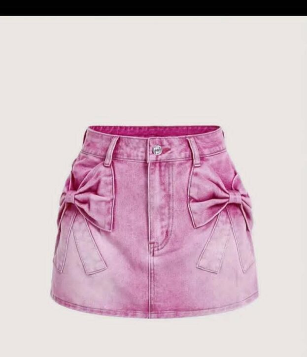 Details: Prominent, oversized bows are integrated into the design on the front hips, adding a playful and cute aesthetic often associated with Y2K or “kawaii” styles. The color features a faded or washed appearance.
